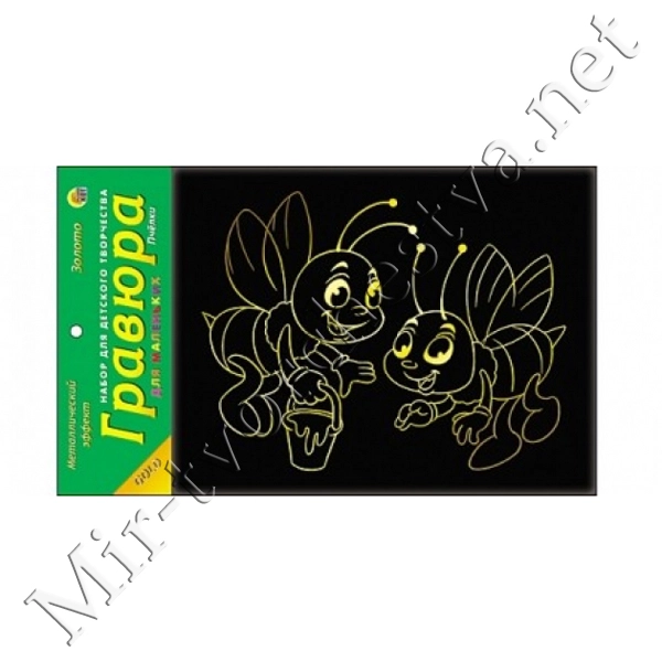 Гравюра 13х17см, для малышей, Пчёлки, Золото