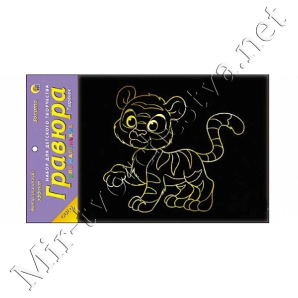 Гравюра 13х17см, для малышей, Тигрёнок, Золото