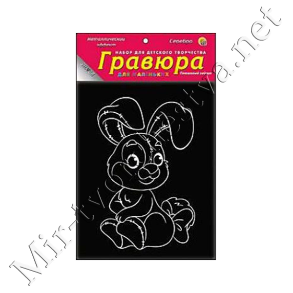 Гравюра 13х17см, для малышей, Плюшевый зайчик, Серебро