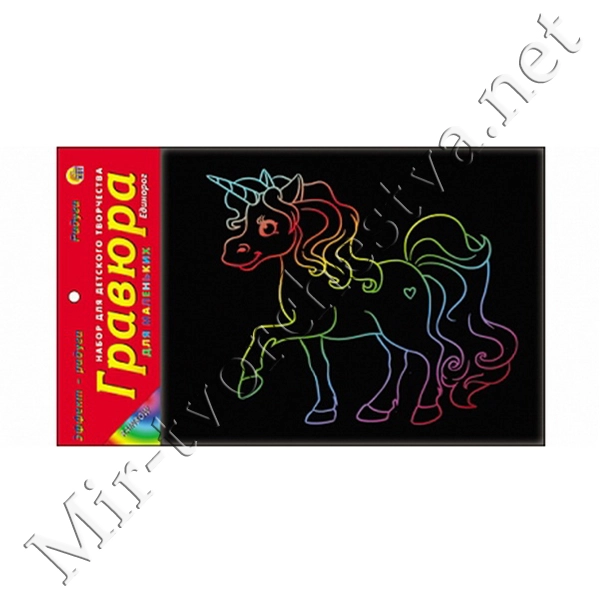 Гравюра 13х17см, для малышей, Единорог, Радуга