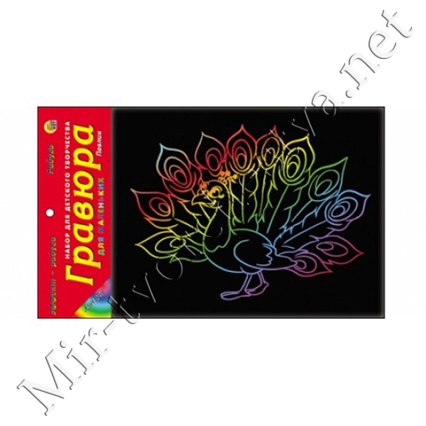 Гравюра 13х17см, для малышей, Павлин, Радуга