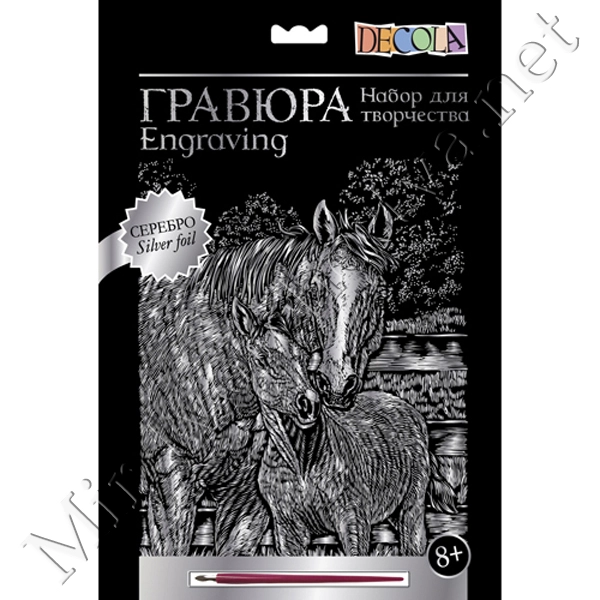 Гравюра "Лошадь и жеребенок", 210*297 мм, 350 г, серебро, Decola