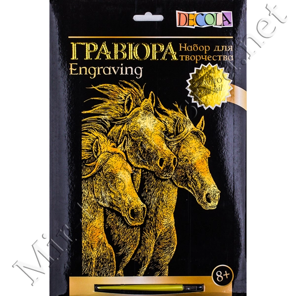 Гравюра "Лошади", 210*297 мм, 350 г, золото, Decola