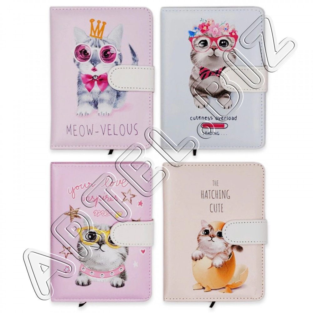 Блокнот А6 иск.кожа 80л CUTE CAT, Белый, клетка,магн.заст. арт.10568