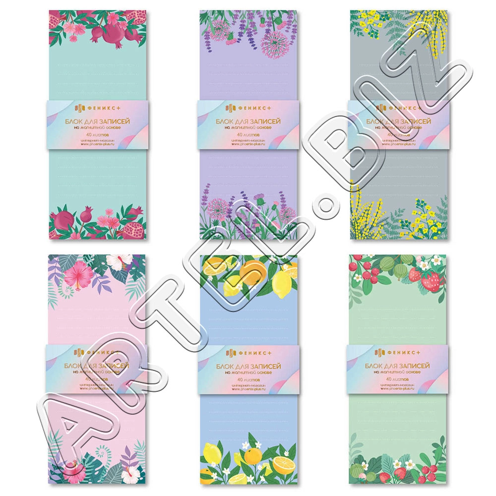 Блок для записи МОИ ЗАМЕТКИ магн.крепл.100*235мм 40л., Сиреневый с цветочками, арт.59035
