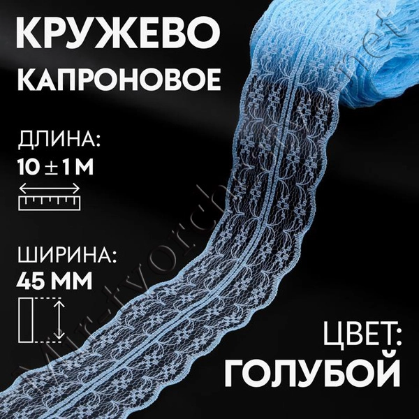 Кружево капроновое, 45мм, цвет Голубой