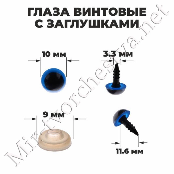 Глаза винтовые с заглушками, полупрозрачные, набор 4 шт, цвет голубой, размер 1 шт: 1x1 см