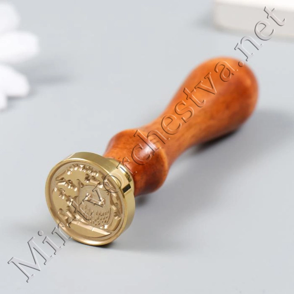 Печать для сургуча с деревянной ручкой "Цветы и завитки" 9х2,5х2,5 см 9901702