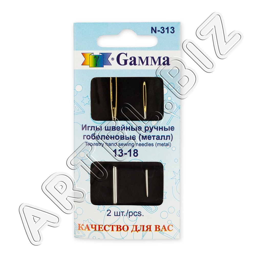 Иглы для шитья ручные "Gamma" N-313 гобеленовые №13-18 2 шт. в конверте с прозрачным дисплеем острие закругл.