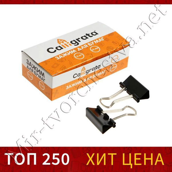 Набор зажимов для бумаг, 25 мм, 12 штук, в картонной коробке, чёрные