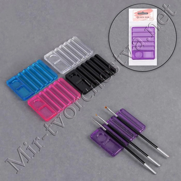 Подставка для маникюрных кистей, 5 секций, с палитрой, 10x7 см, цвет МИКС