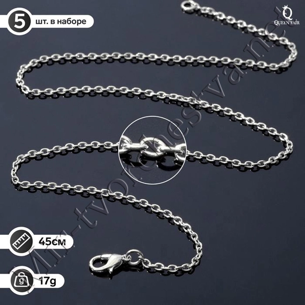 Цепочка с карабином L45см 0,5 СМ-1935, цвет Серебро