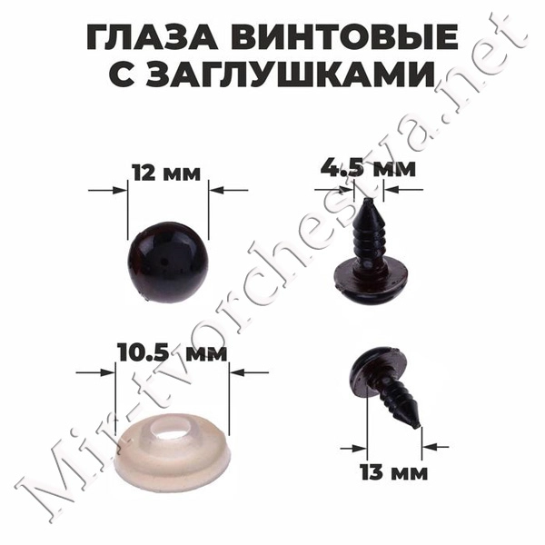 Глаза винтовые с заглушками, полупрозрачные, набор 4 шт, цвет коричневый, размер 1шт: 1,2x1,2 см