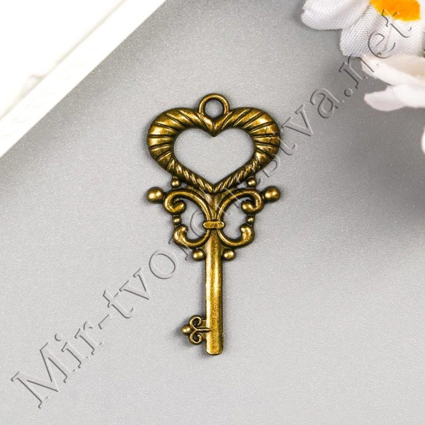 Декор металл для творчества "Ключ от сердца" под латунь (СК1823) 4х2 см 2268686