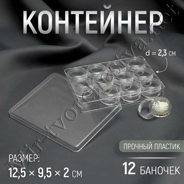 Контейнер для рукоделия, 12 баночек d = 2,3 см, 12,5x9,5x2 см, цвет прозрачный