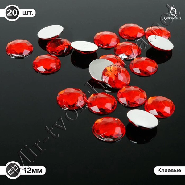 Стразы плоские клеевые круг, 12 мм, (набор 20шт), цвет красный