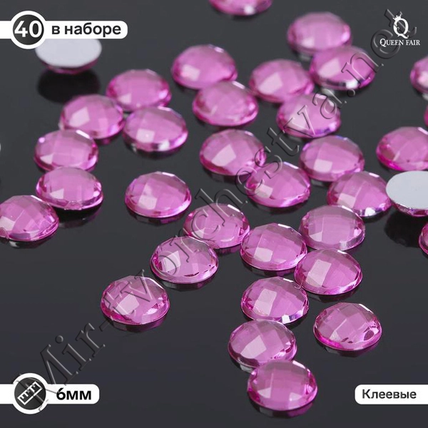 Стразы плоские круг, 6 мм, (набор 40шт), цвет темно-розовый