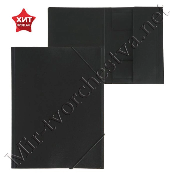 Папка на резинке А4, 500 мкм Calligrata, корешок 4 мм, до 300 листов, тиснение "песок", чёрная