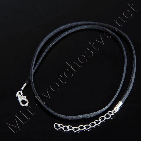 Шнурок из искусственной замши с замком, 45см+удлинитель, цвет черный