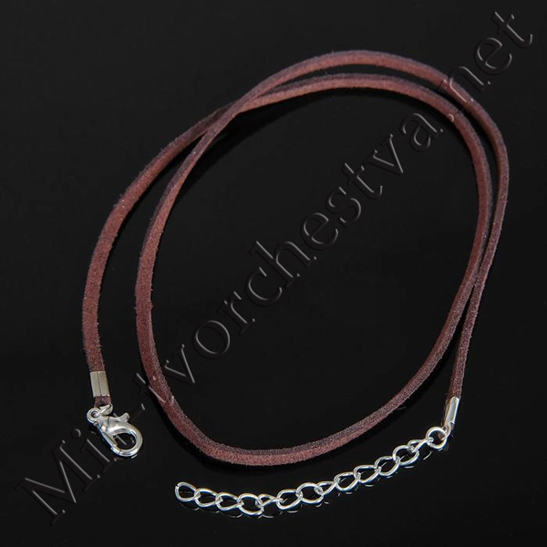 Шнурок из искусственной замши с замком, 45см+удлинитель, цвет темно-коричневый