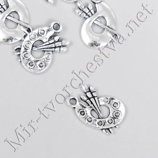 Декор для творчества металл "Палитра с кистями" серебро 1,7х1,2 см 3531360