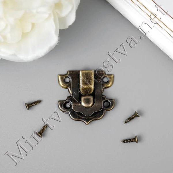 Замок металл для шкатулки бронза + гвозд. 2,9х3 см 3539210