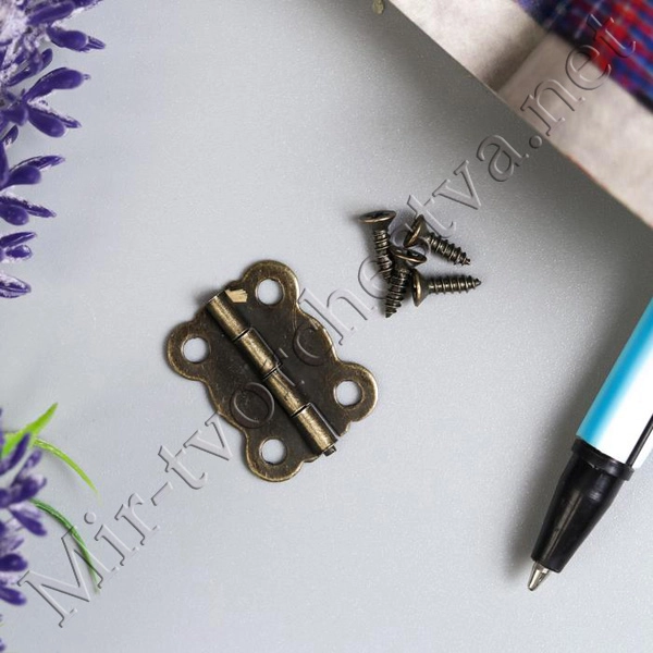 Петля накладная фигурная угол открывания 180 градусов + гвозд. набор 10 шт 2х1,7 см 3539219