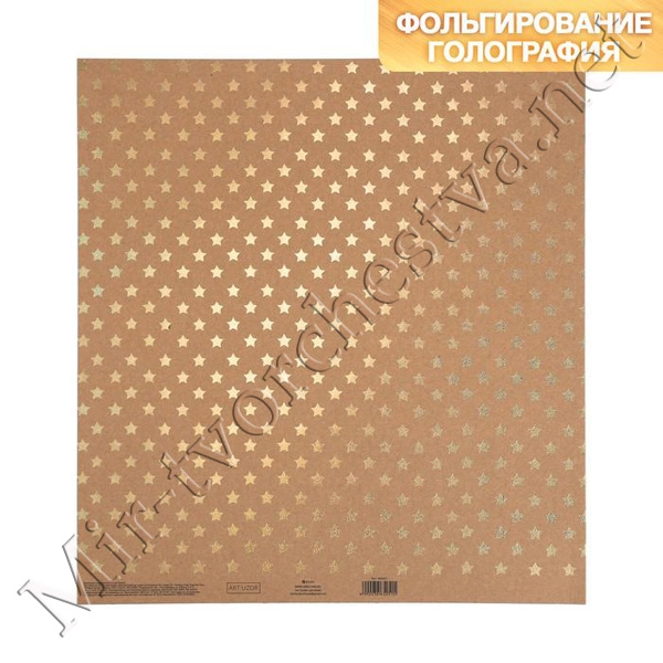 Бумага для скрапбукинга крафтовая с голографическим фольгированием «Звёзды», 30.5x32 см