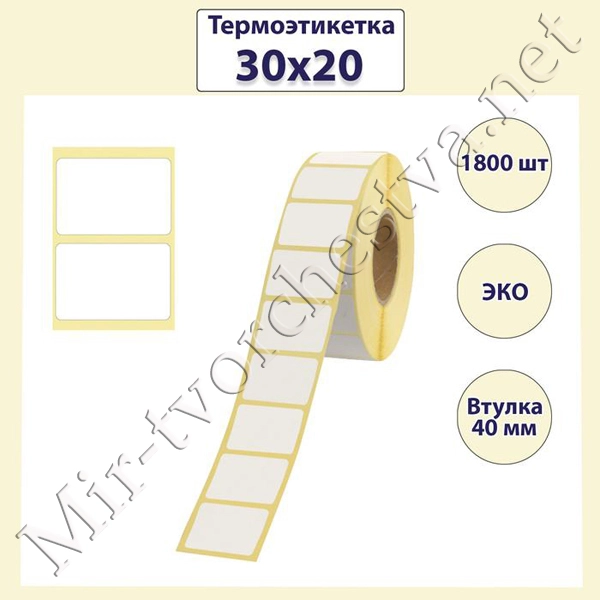 Термоэтикетка 30x20 мм, диаметр втулки 40 мм, 1800 штук, ЭКО