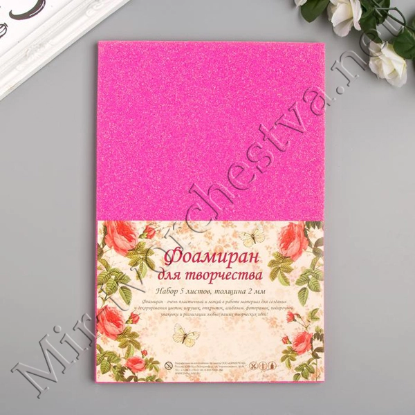 Фоамиран "Неоновый блеск - ярко-розовый" 2 мм формат А4, Арт Узор