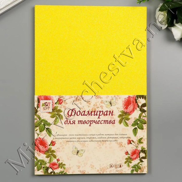 Фоамиран "Неоновый блеск - жёлтый" 2 мм формат А4, Арт Узор
