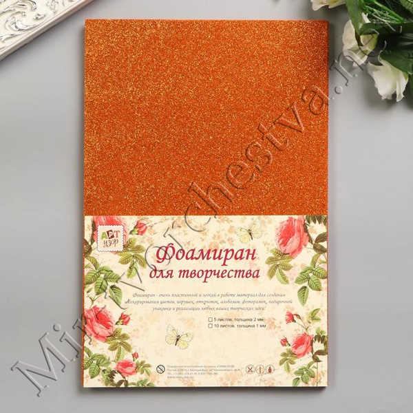 Фоамиран "Рыжий блеск" 2 мм формат А4, Арт Узор