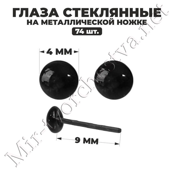 Глаза стеклянные на металлической ножке, d= 0,4 см, цвет чёрный