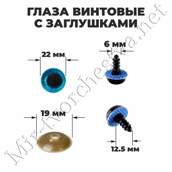 Глаза винтовые с заглушками, «Блёстки», размер 1 шт: 2,2 см, цвет голубой