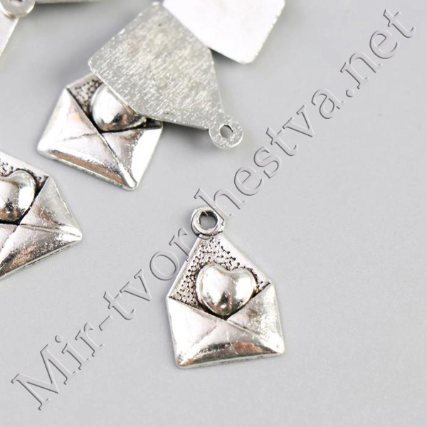 Декор для творчества металл "Конвертик с сердечком" серебро 1,2х1,8 см 4645666