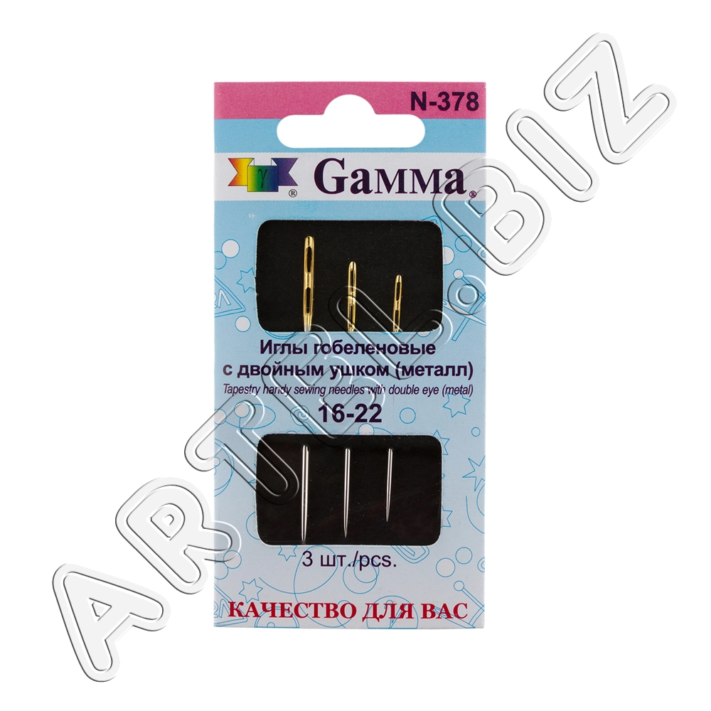 Иглы для шитья ручные "Gamma" N-378 гобеленовые №16-22 с двойным ушком 3 шт. в конверте с прозрачным дисплеем острые