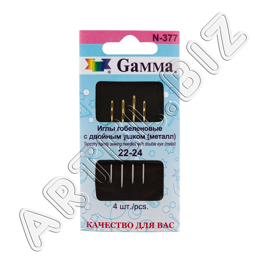 Иглы для шитья ручные "Gamma" N-377 гобеленовые №22-24 с двойным ушком 4 шт. в конверте с прозрачным дисплеем острие закругленное