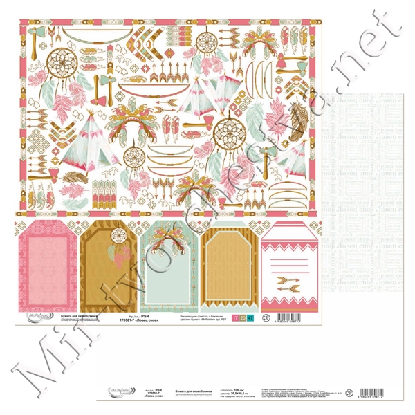 Бумага для скрапбукинга "Ловец снов" 6, 190 г/кв.м 30.5x30.5 см, Mr. Painter