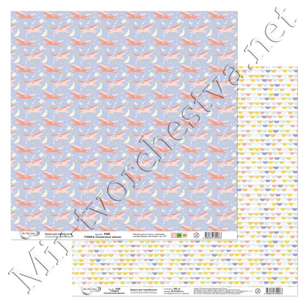 Бумага для скрапбукинга "Солнечный зайчик" 7, 190 г/кв.м 30.5x30.5 см, Mr. Painter