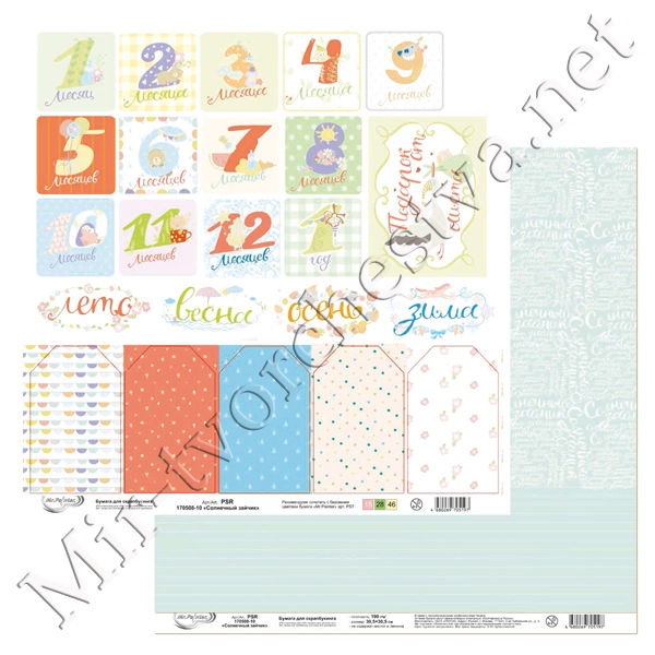 Бумага для скрапбукинга "Солнечный зайчик" 10, 190 г/кв.м 30.5x30.5 см, Mr. Painter