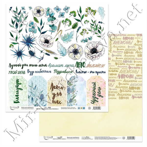 Бумага для скрапбукинга "Цветочный атлас. Анемоны." 7, 190 г/кв.м 30.5x30.5 см, Mr. Painter