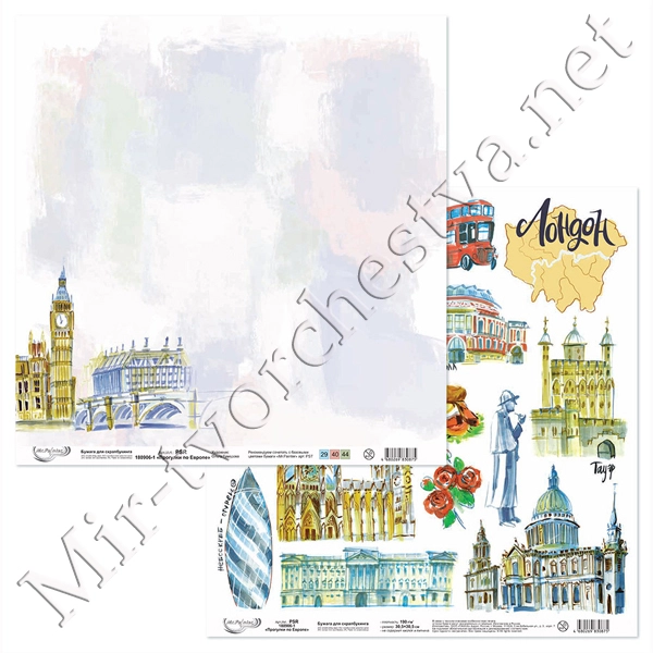 Бумага для скрапбукинга "Прогулки по Европе" 3, 190 г/кв.м 30.5x30.5 см, Mr. Painter