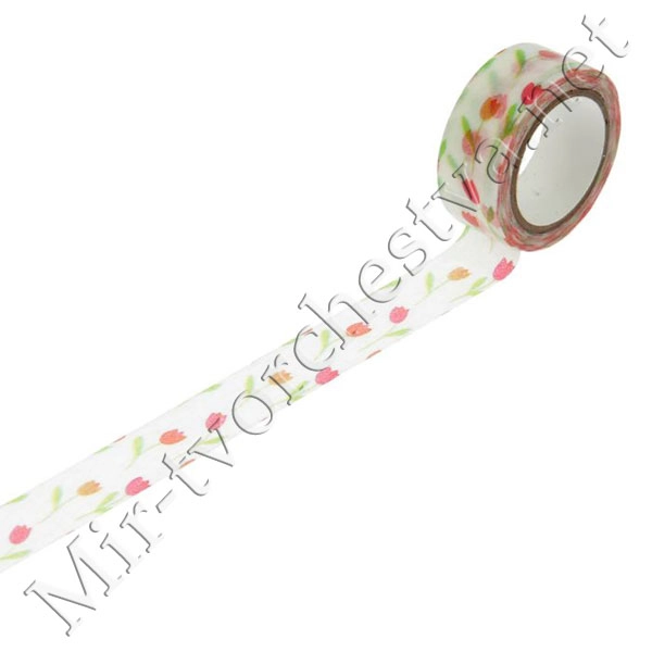 Клейкая лента декоративная бумажная "Тюльпанчики" ширина 1,5 см, длина 5 метров 1644581