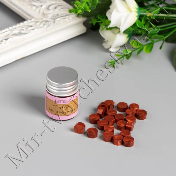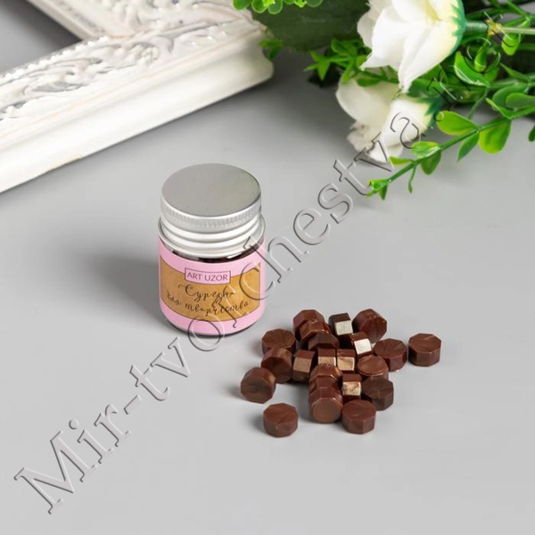 Сургуч в гранулах в баночке "Восьмигранник", (9г) 4.5x3x3см, цвет Кофейный, Арт Узор