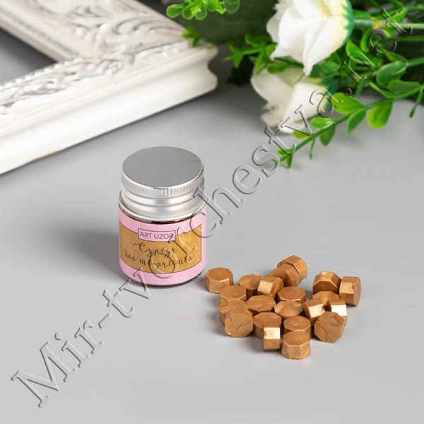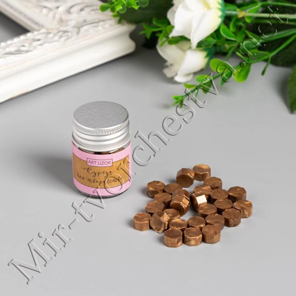 Сургуч в гранулах в баночке "Восьмигранник", (9г) 4.5x3x3см, цвет Бронзовый, Арт Узор