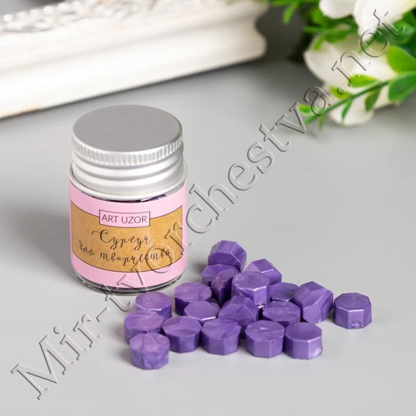 Сургуч в гранулах в баночке "Восьмигранник", (9г) 4.5x3x3см, цвет Светло-сиреневый, Арт Узор