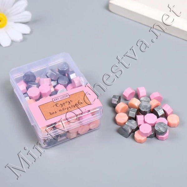Сургуч в гранулах в коробочке "Восьмигранник", (35г) 2.4x5.5x7см, цвет Розовый и Серебро, Арт Узор