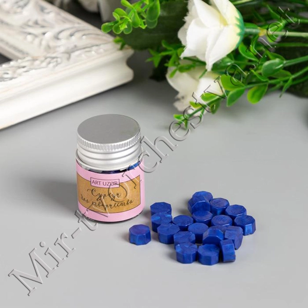 Сургуч в гранулах в баночке "Восьмигранник", (9г) 4.5x3x3см, цвет Ультрамариновый, Арт Узор