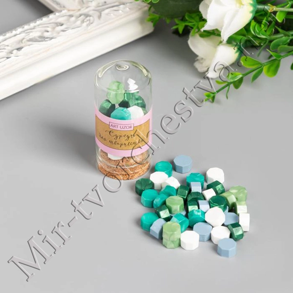 Сургуч в гранулах в баночке "Восьмигранник", (15г) 6x3x3см, цвет Палитра зелёного, Арт Узор