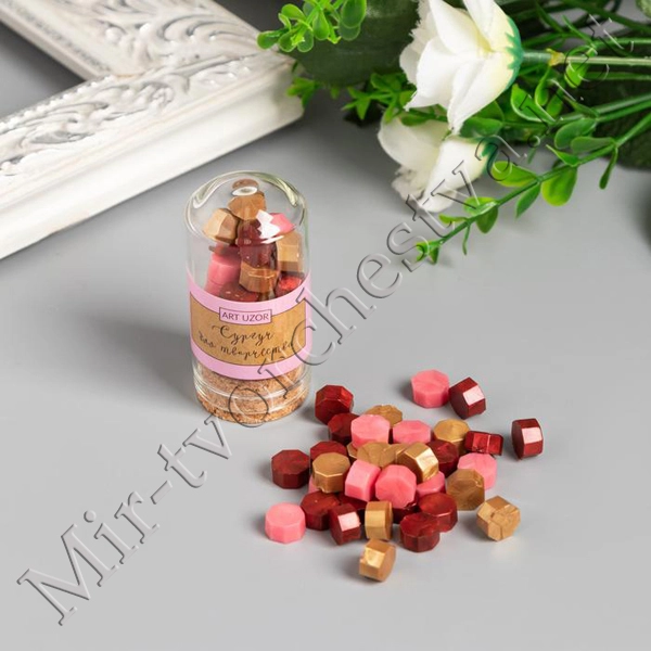 Сургуч в гранулах в баночке "Восьмигранник", (15г) 6x3x3см, цвет Бордо, Розовый и Бронза, Арт Узор